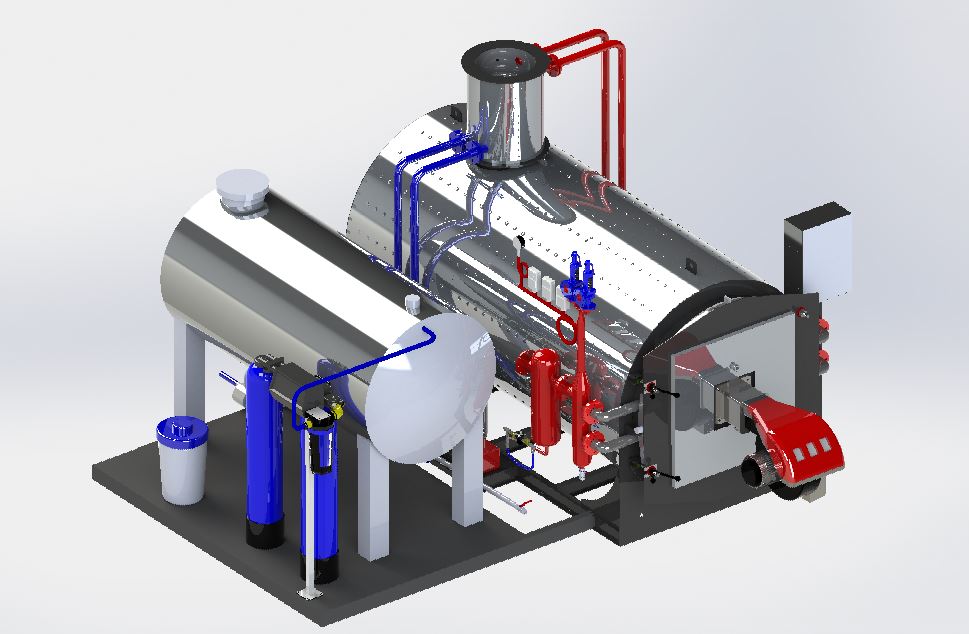 Включает все элементы парогенераторной системы в смонтированном состоянии на единой платформе. Ускоряет процесс монтажа и ввода в эксплуатацию. После установки модульной системы на рабочем участке остается подсоединить линии подвода топлива, воды, электричества и смонтировать дымовую трубу.